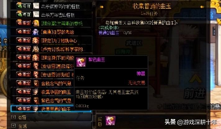 一次任务10个材料 不超过1万金币,完成一个任务可以获得一个紫色曲玉