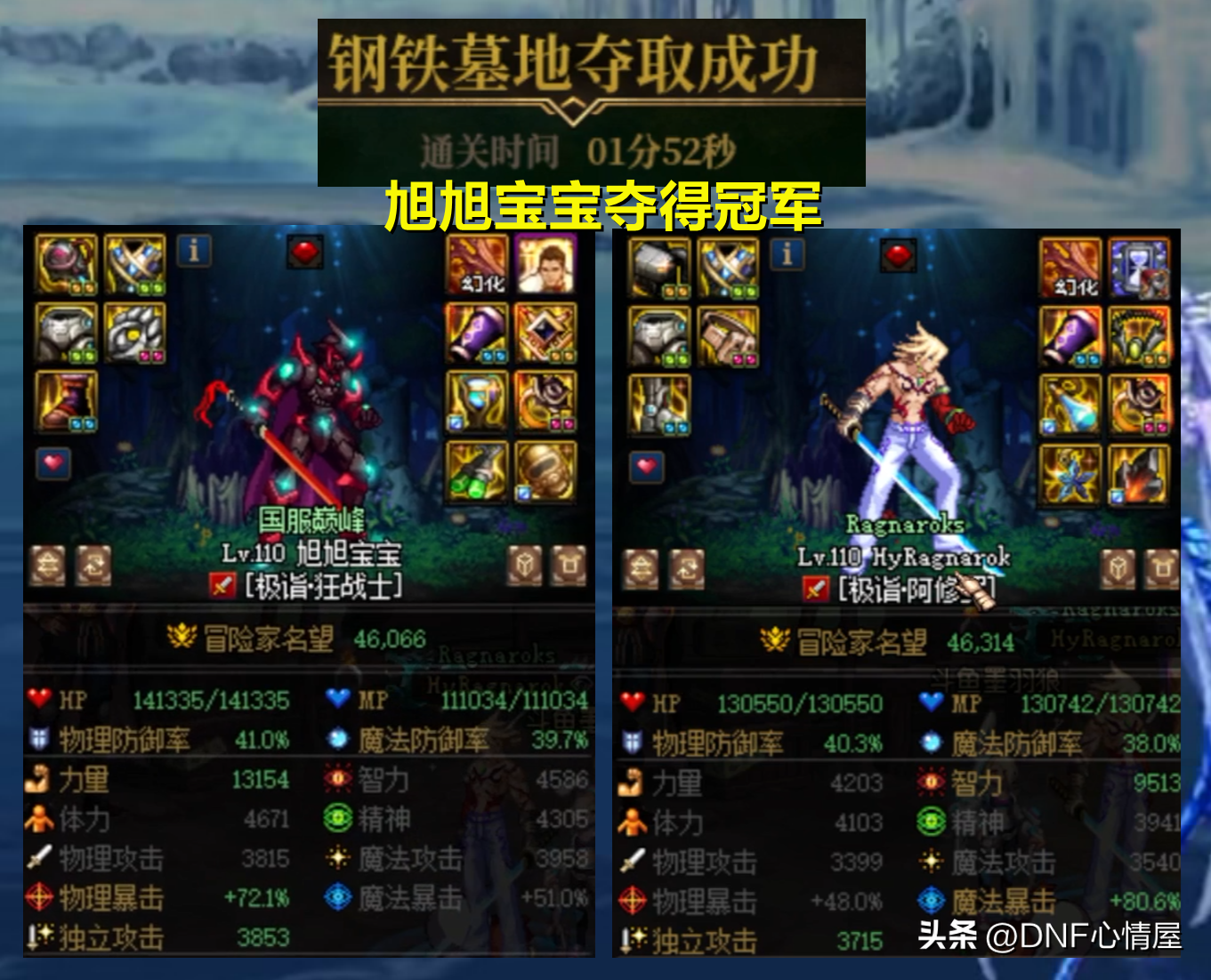旭旭宝宝和墨羽狼,一个是国服第一红眼,一个是国服第一阿修罗,无论是伤害,又或者操作方面,都相当的“爆炸”。1分52秒的成绩,震撼了全场,弹幕都目瞪口呆,真的太强了!