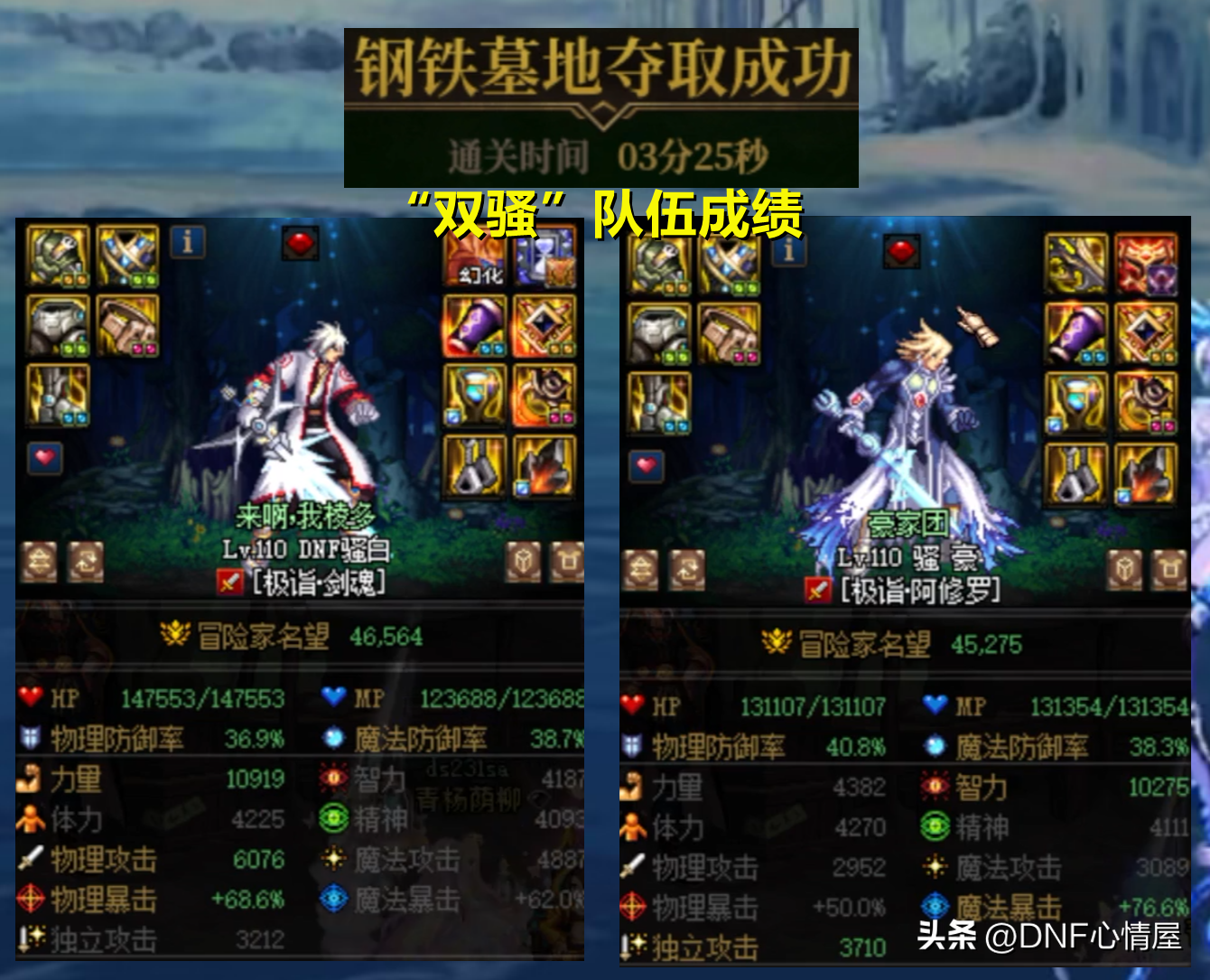 “双骚”组合也备受瞩目,但“骚白”(第一剑魂)+“骚豪”(第一阿修罗)两个人的成绩,不是那么的理想,打出了3分25秒,接连的出问题,“盖聂”甚至忘记加buff,甚至还失误死了。被誉为“神剑”的盖聂,这次糗大了,有种“身败名裂”的既视感。