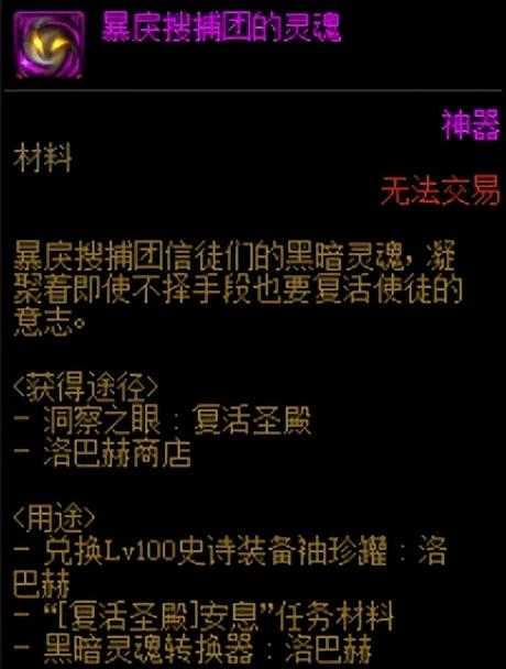 账号内的超界、普雷、100级传说装备都可以升级为工作服史诗,升级用到的暗魂水晶可以通过痛苦地下室、暗黑神殿与洞察之眼当中获得。若深渊中迟迟不出想要的套装,勇士们可以发动账号内的角色一起收集暗魂水晶,快速的升级出史诗套装。