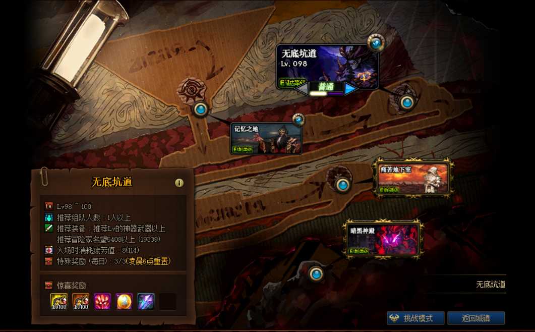 可以获得百级史诗装备的日常副本包括:德洛斯矿山四副本(记忆之地、无底坑道、痛苦地下室、暗黑神殿)、黑鸦之境四副本(荆棘乐园、德洛斯矿山外围、远古墓地、绝望摇篮),勇士们在击败领主获得特殊翻牌时都会有一定几率出现史诗装备。