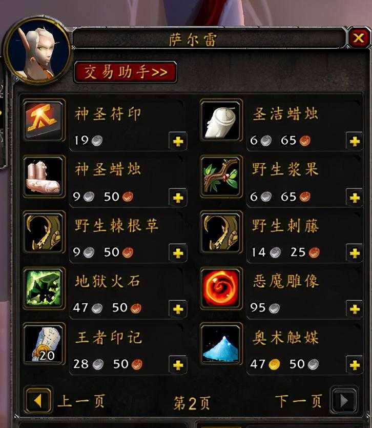 2.然后到银月城(54,70)处,找材料商萨尔雷处花费47G50Y购买奥术触媒。