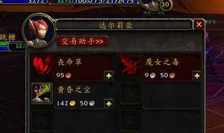 1.在银月城(80,51)处,找毒药商人NPC达尔莉亚花费142G50Y购买一个黄昏之尘。