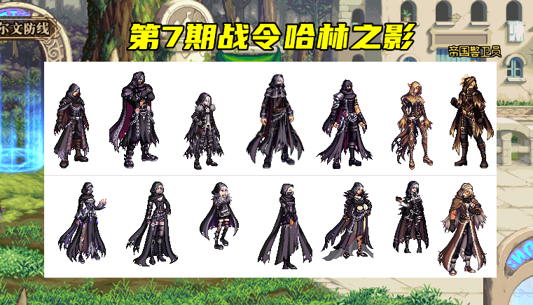 【哈林之影】,作为第7期战令的终极奖励,总算是有一套符合各个职业审美的时装了,不管是男鬼剑还是女魔法,都恰到好处的驾驭了这套时装,黑衣黑口罩加持,暗夜风,再配上一个暗黑系光环的话,那瞬间提升两个档次。