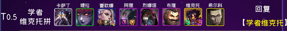 如2保镖+3辛迪加(蕾欧娜+布隆+阿狸) ,这样3辛迪加下布隆无装备也能稳定打出控制,给维克托争取输出时间;