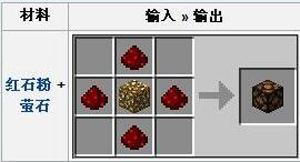 先把材料准备好,需要萤石和红石粉,具体摆放位置见下图。