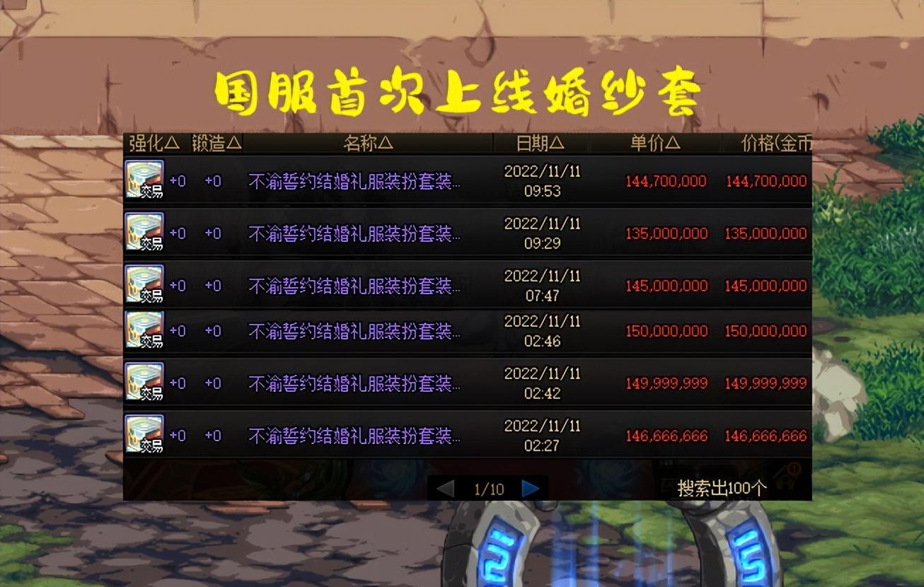 但事实上,不仅有人买,而且买的人还非常多,打开拍卖行,在售数量只有不到两页,但是成交数量却超过了10页,说明已经交易的婚纱套至少在100套以上!