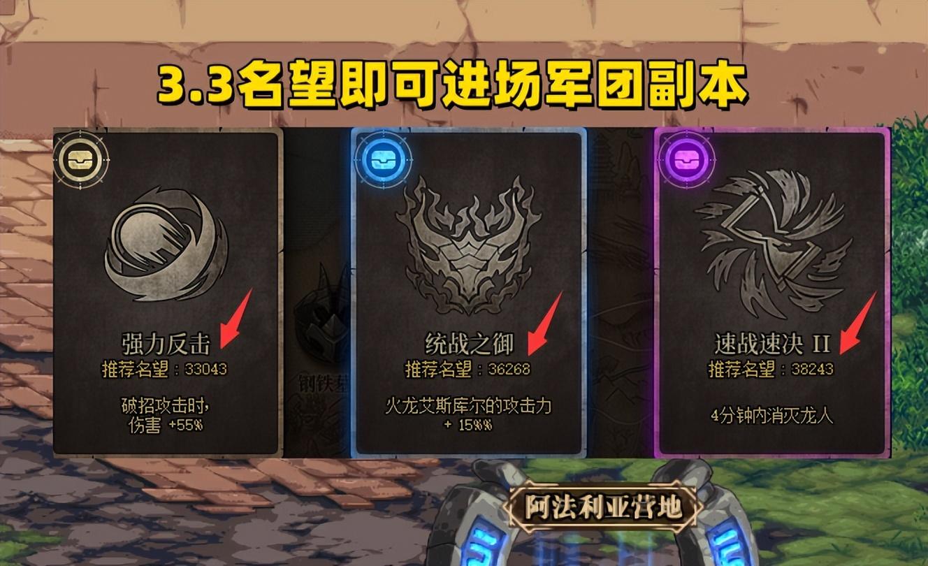 军团地下城分为3个难度阶段,但只需要33043名望即可进场,也就是说,如果有大佬带你的话,即便你只有3.3名望,依旧可以打最高难度副本,而难度越高,所掉落的材料装备等级也会越高。