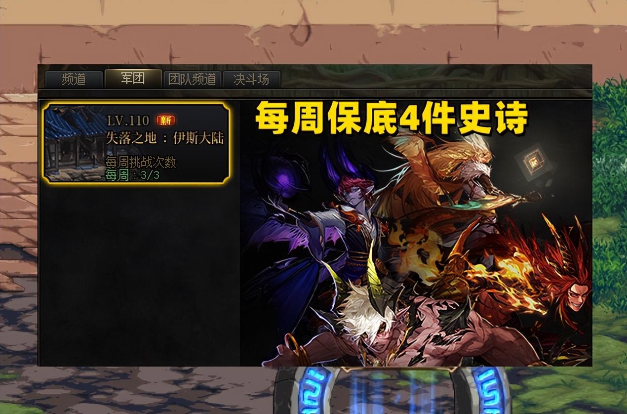 军团地下城由4个龙人boss组成,打倒每个龙人时,必定掉落1件史诗,所以实际上每周保底可以拿到4件史诗。