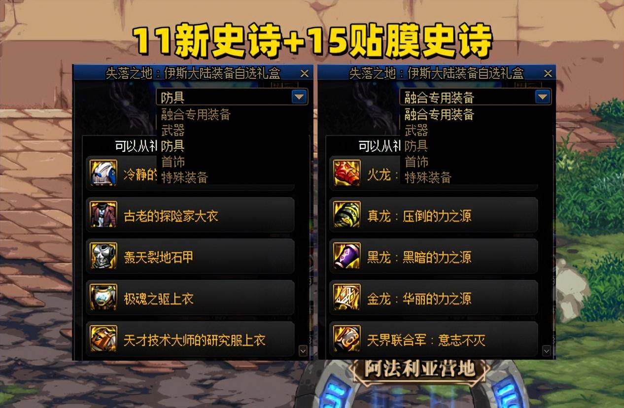 2、新副本会产出新装备,11件固定史诗+15件贴膜史诗!固定史诗就不说了,爆率比较高,大家都可以兑换,就看具体搭配了;