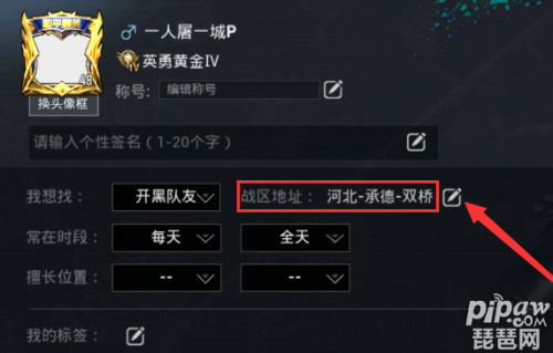 2、点击名片,随后你将可以进入到名片的页面中,在名片的页面中你将可以看到你当前战区的地址,你可以点击战区地址后面的修改图标。