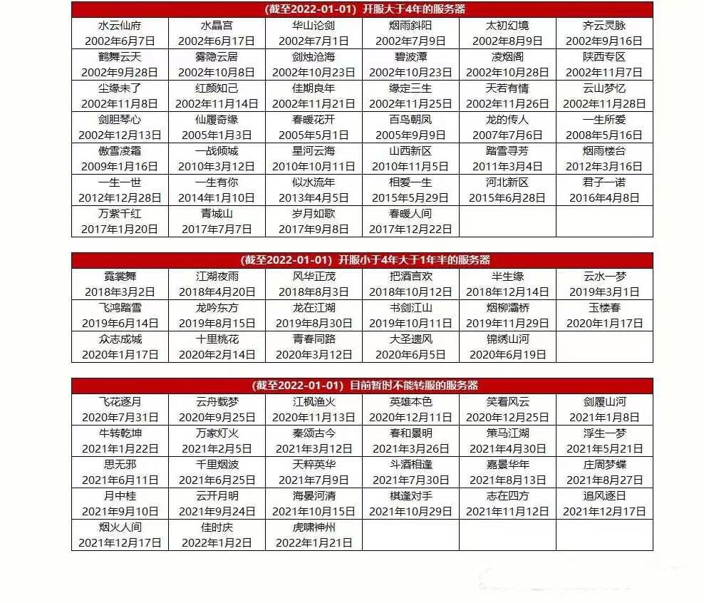 大话西游新区开服表一览(大话西游完整的开服表介绍)