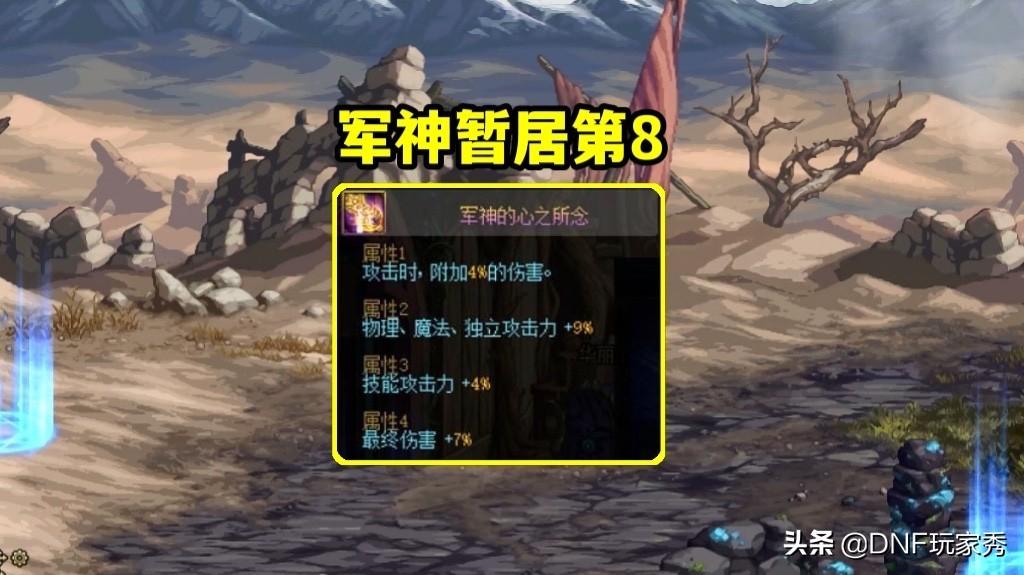 第4-10名:至高之炎、狂乱手镯、无尽的探求、次元耳环、军神神话、大幽魂上衣、心绞痛,一代天骄军神耳环,只能排名第8。