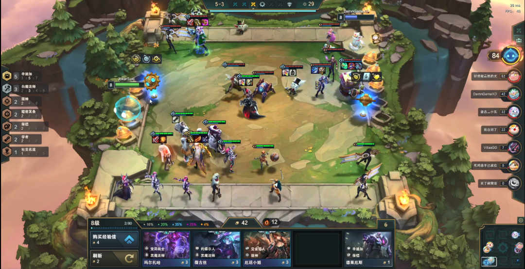 5-1/5-2拉8人口,根据经济情况而定,保证拉8人口能有30+搜卡即可,8人口开烬+发条+希尔科,希尔科没来之前用烈娜塔即可,然后把莫甘娜D到三星即可,莫甘娜不三星不考虑上九人口!