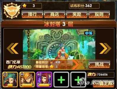 进入冰封塔后,玩家选择好自己的上阵角色即可开始闯关,逐层挑战。