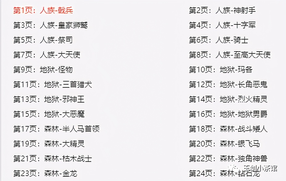 每个种族都有8个阶位的兵种。