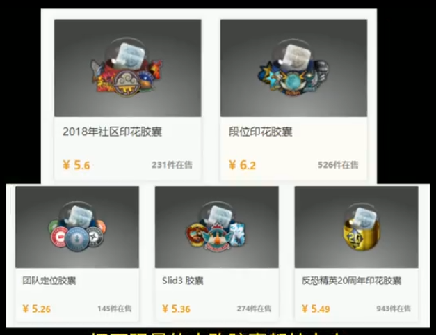 比如这个段位印花胶囊,成本4元不限量销售,已经被炒到6快多了,里面的产物,全球精英贴纸也被炒的翻倍。