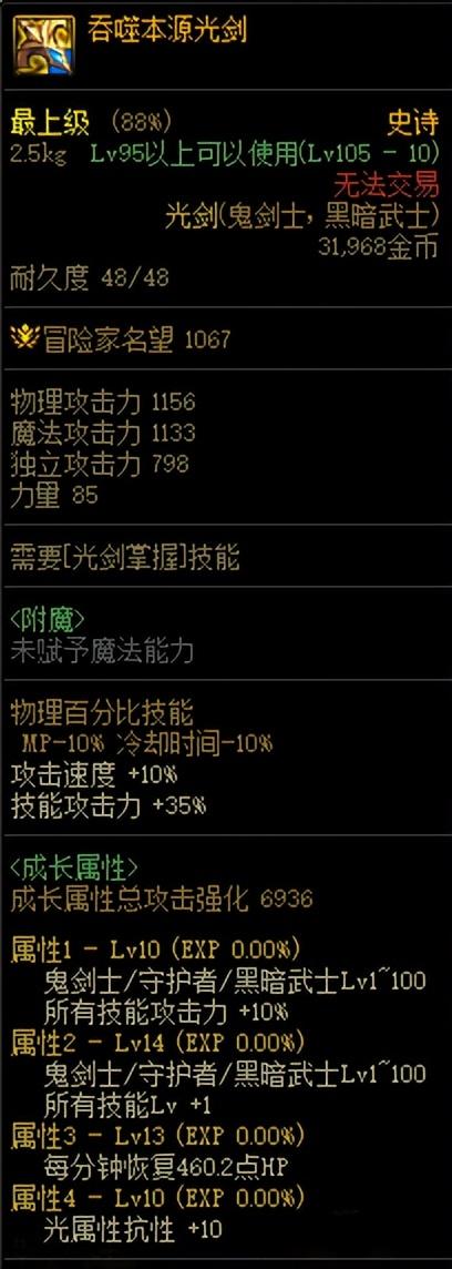 因为105级武器是不带属性攻击的,所以继承过后,如果没有其他属性攻击来源,则需要在契约绑定小晶块或者购买带有属性攻击的辟邪玉。