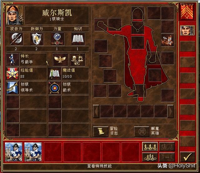 威尔凯斯:特长弓箭手,初始自带初级领导术和初级箭术。有没有感觉很搭,弓箭手配箭术莫名让人安心,主要是我最喜欢玩远程兵。不过由于弓箭手属于低级兵,后期还是比较乏力,当然你可以选择让电脑根本没有后期。