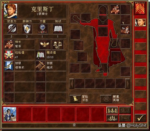 克里斯丁:特长弩车,初始自带初级领导术和初级炮术。嗯,这个英雄最大的优势就是免费获得价值2500的弩车了。