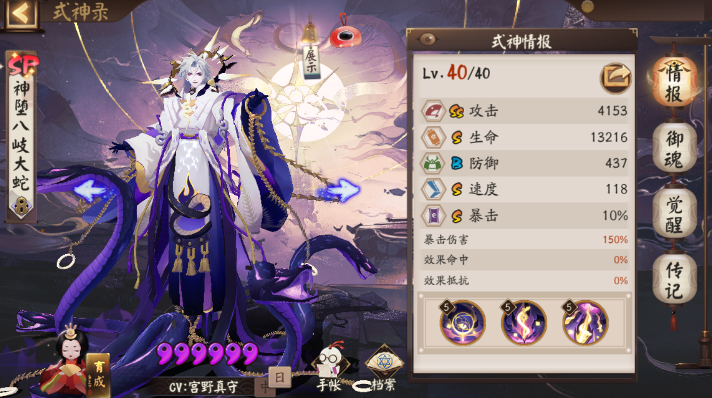 神堕八岐大蛇的面板基础数值大体上继承了SSR的评级,在整体面板上甚至可以说略强于SSR本体一丢丢。