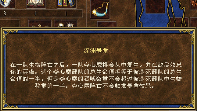 “深渊号角”新增了4个组合宝物。都是英雄无敌3就有的宝物散件,只是额外增加了组合后的属性。
