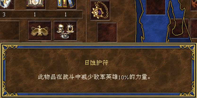 日蚀护符:战斗中减少敌军英雄10%的力量。