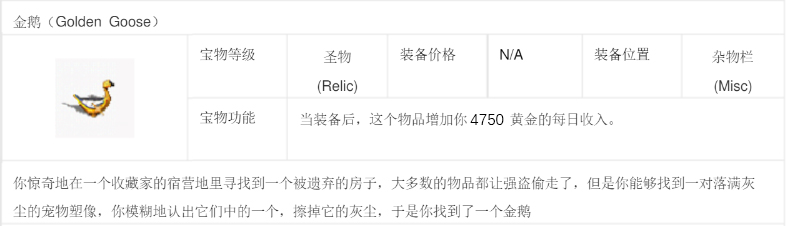 金鹅:每日增加4750的黄金,由黄金包+黄金袋+黄金囊组合而成。