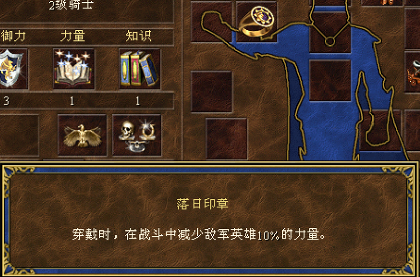 落日印章:战斗中减少敌军英雄10%的力量