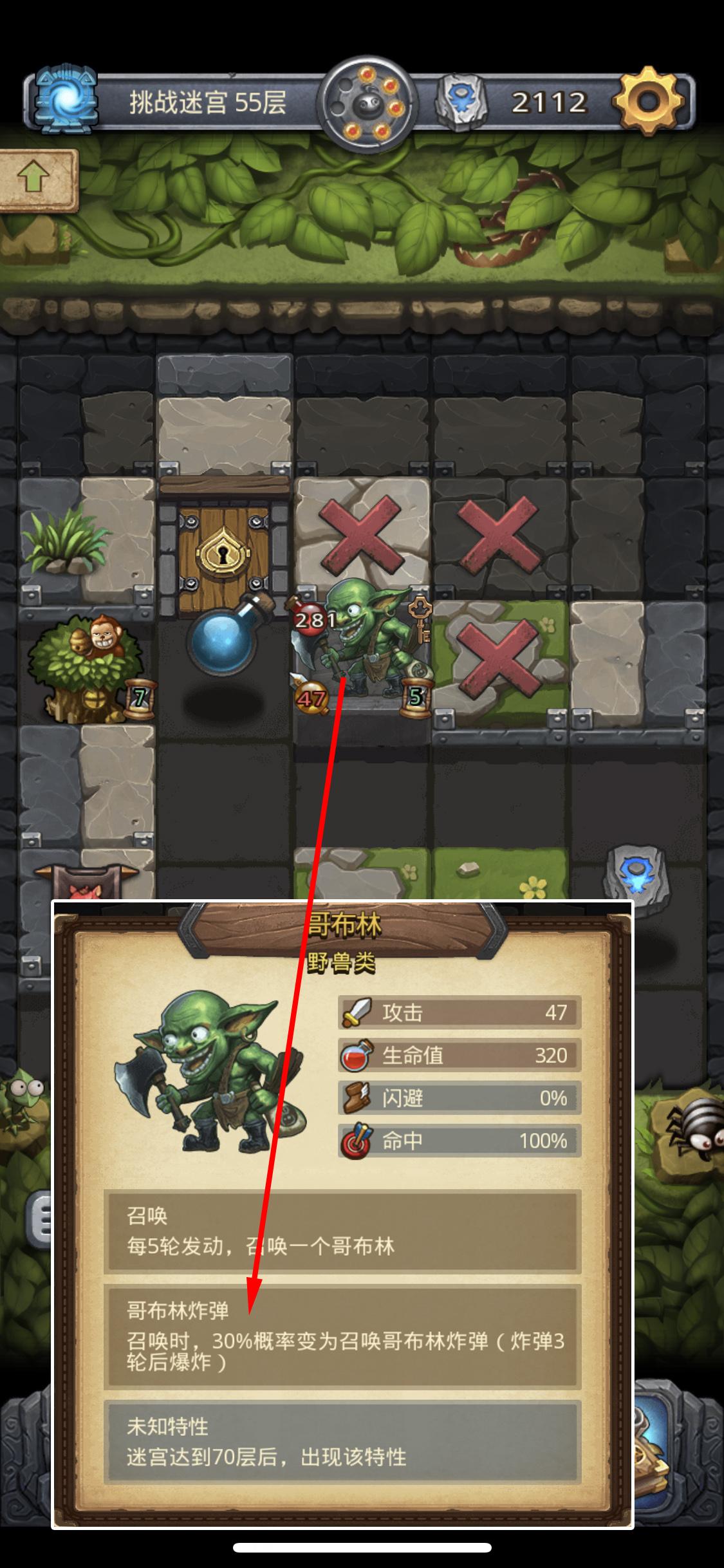 拆除10个炸弹,必须先达到40层,40层以后的哥布林有几率召唤炸弹,炸弹必须用冰锥术打才算次数,因为我们在做50层前不用魔法卷轴的任务,所以这里要51层以后开始拆炸弹,一只哥布林会召唤多次,被召唤出来的哥布林是不会召唤炸弹的。