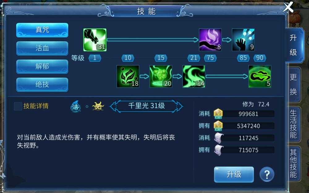 1.职业技能:对技能选择进行升级技能。
