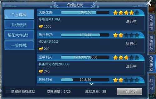 成就系统就是当你某一项东西达到要求后可以获得如元宝奖励、称号奖励。