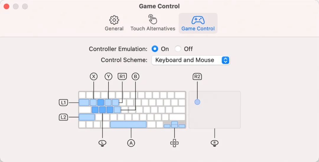 顾名思义,游戏控制器模拟可以将触摸板或者键盘映射成触屏操作,然后就可以和玩电脑端游戏一样游玩 iOS 端游戏了。