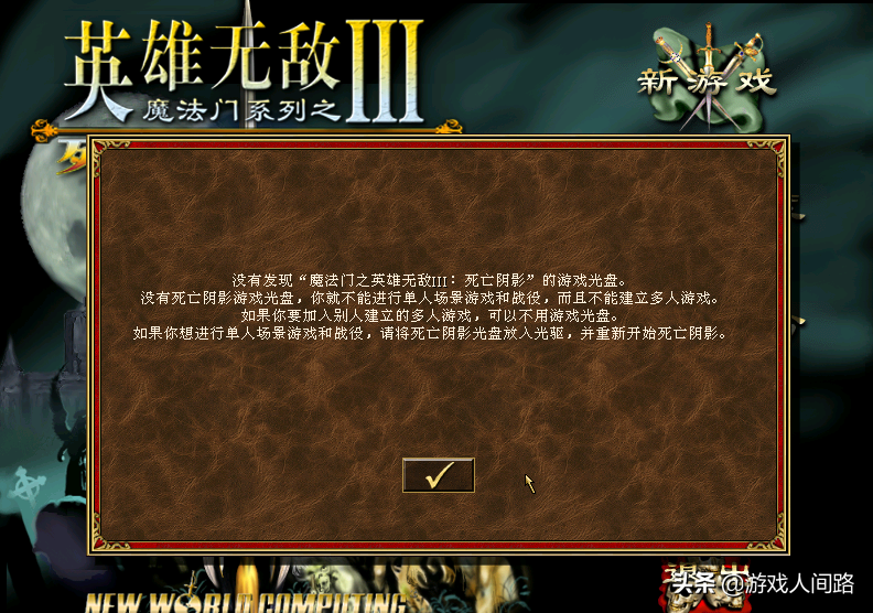 今天整理硬盘时发现游戏里面还存着一个魔法门英雄无敌之死亡阴影的游戏,这是我上大学时玩过的游戏,现在已经有20年了。