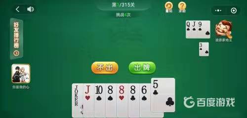 2、我不出,途游家地主打出打出一张3,我打出一张5。