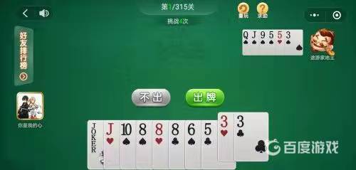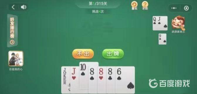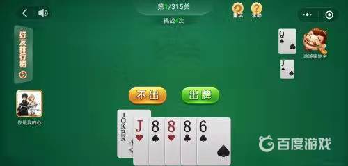 4、途游家地主打出打出一张J,我打出一张小王,接着打出三张8带一张6,然后打出一张J就过关了。
