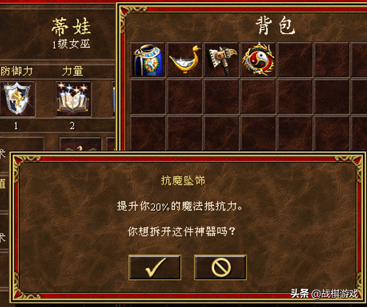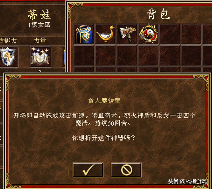 ①巨魔铁拳:恶魔棒、狂魔盾、巨人甲、智慧冠合成。开场即自动施放攻击加速,嗜血奇术,烈火神盾和反戈一击四个魔法。持续50回合。(4个配件组合前属性为攻防+5,力知+4)小辉点评:简直是物理系英雄的神器。人与人后期对决,战术技能和抢速度都成为重中之重。可能部队里塞一只凤凰要成为必须了,而且要主动进攻。