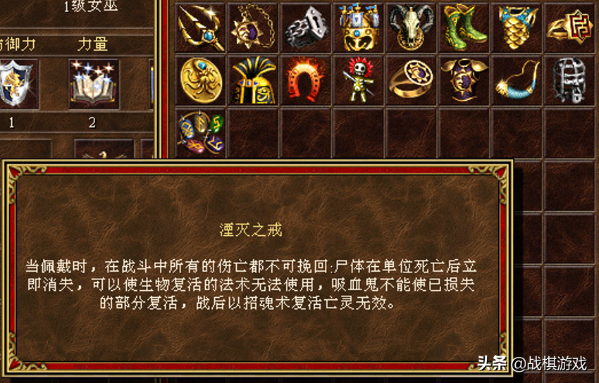 湮灭之戒:战斗中所有伤亡都不可挽回。部队死亡后尸体消失。聚灵重生、转世重生、牺牲、大天使的复活、吸血鬼无法吸血恢复数量,战后招魂术失效。