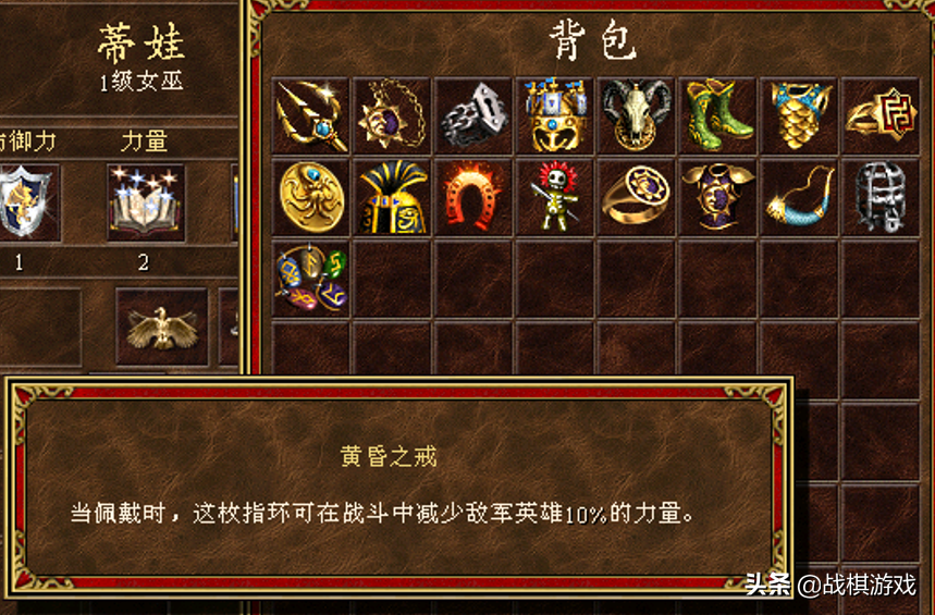 黄昏之戒:战斗中临时减少敌军英雄10%的力量。