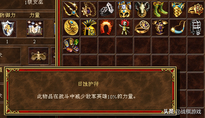 日蚀护符:战斗中临时减少敌军英雄10%的力量。
