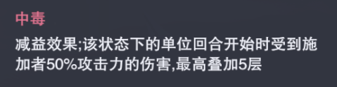 随后当独孤雁进行行动结束时,她便会对所有处于【中毒】状态的对手造成一次中毒伤害,这个伤害可以有基础的伤害加成,并且和对方身上的【中毒】层数有关(中毒最高5层),因此这个伤害在触发时的效果还是非常可观的,一点不比刚刚我们提到的【灼烧】伤害低,这也是中毒队目前比较有特点的一个攻击方式。