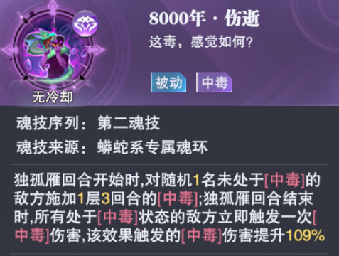 而当我们的等级得到进一步提升之后,随着独孤雁的【诡毒爆发】与独孤博的【碧磷幻境】两大技能的出现,中毒流队伍的毒伤与控制还会进一步得到提升,不过中毒队目前最大的困境是相关魂师的数量并不丰富,后续如果有新魂师的加入,维一相信中毒队的明天也会更加辉煌。