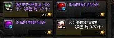增加增幅强化成功率的药物可以在公会大厅中的守护精灵商店购买,这些宠物和药物作用有多大我不知道,但是用总比没有强。