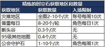 下面列举一些精炼的时空石和时空石的获取地区和数量。