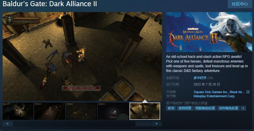 今日(7月21日),经典动作RPG《博德之门:黑暗联盟2》现已于Steam推出,国区售价90元,不支持中文,Steam综合评价“多半好评”,感兴趣的玩家可以进入商店页面。