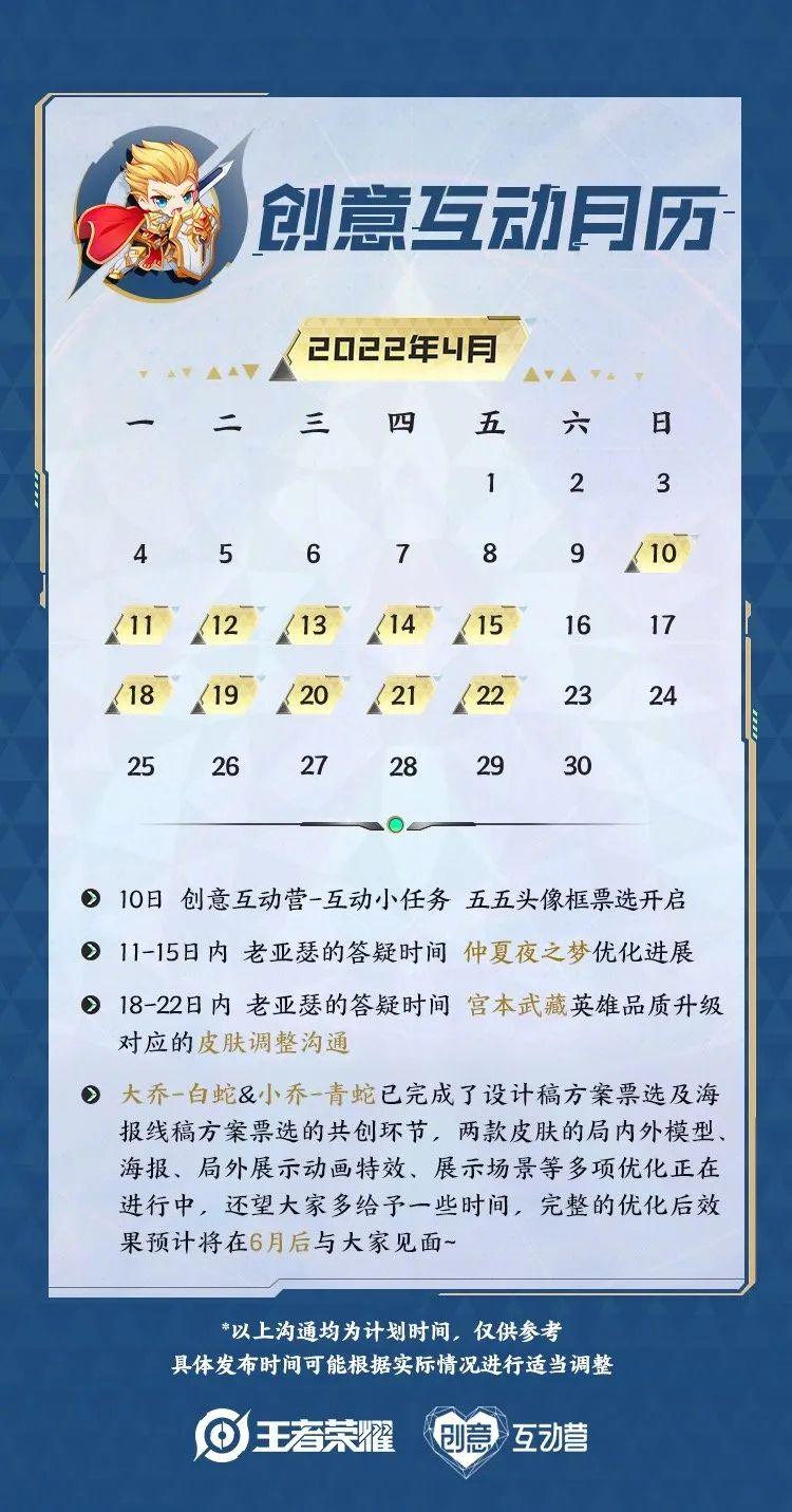 另外,4月份的沟通,提到了五五开黑节头像的选择。不知不觉,离五五开黑节也越来越近了,貂蝉又要出新皮肤了。而仲夏夜之梦,又要开放优化进展的沟通了。这款皮肤的优化一直不是很让人满意。还有宫本武藏的重塑,形象大改,那么他的皮肤也会跟着大改,这个月就会放出宫本皮肤的优化。而玩家们一直期待的大乔小乔的青蛇白蛇皮肤,也是一直拖,这一次倒是放出了预计时间,大改是在6月份,但这个似乎还不是正式上线时间。正式上线时间,应该要推迟到S28赛季了。