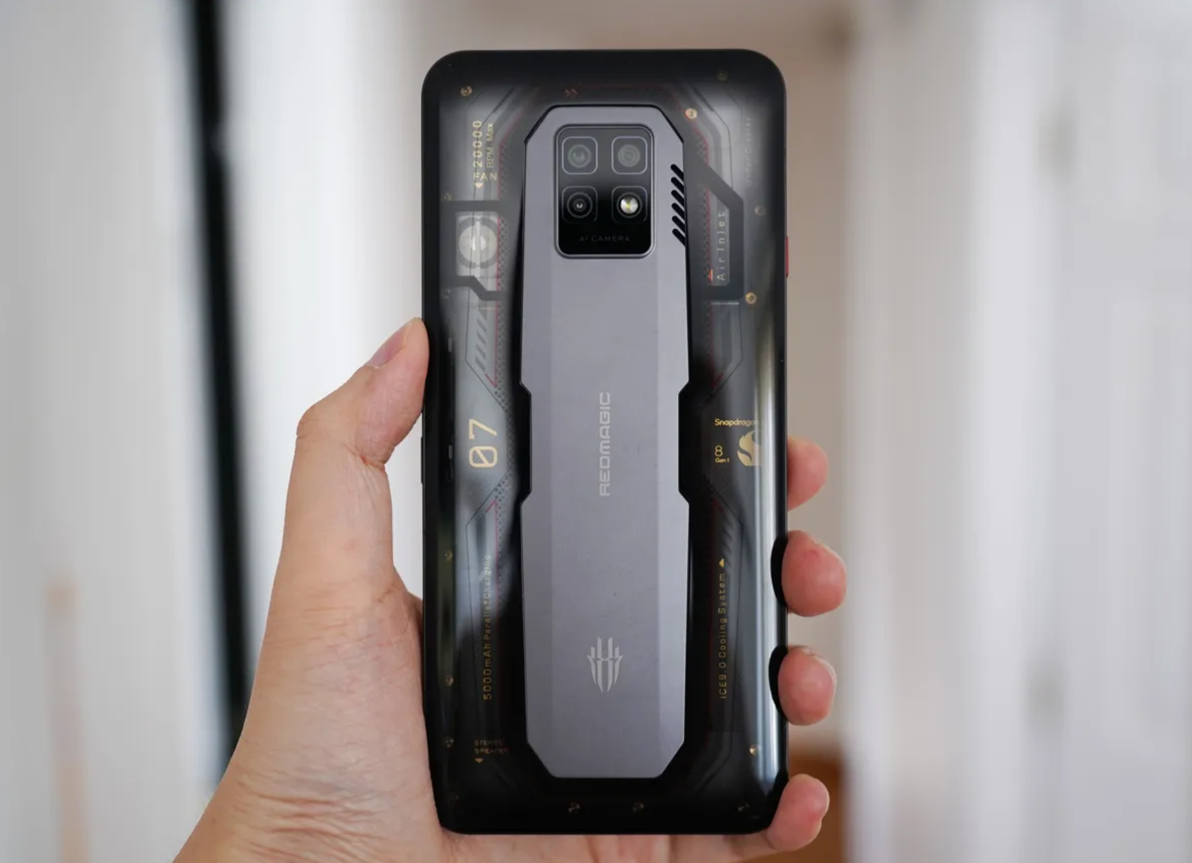 这款手机中有个款式采用透明背面,展示了手机内的一系列以游戏为中心的功能,如 Qualcomm Snapdragon 8 Gen 1 处理器、16GB RAM、八核 CPU、5,000mAh 大容量电池和 RedMagic 的主要卖点: 20,000 RPM 涡轮风扇。