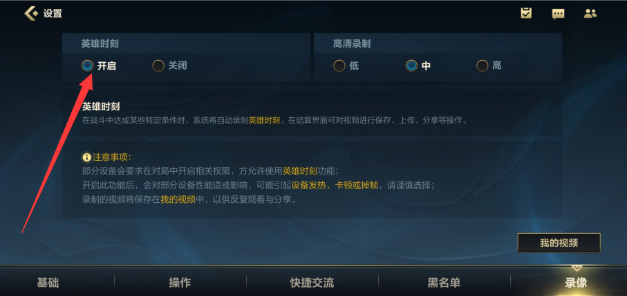 英雄联盟手游英雄时刻和pc端是一样的,会截取游戏中的高光时刻,这是很多人想要的。不过有些玩家不知道在哪设置,好吧,小编这就给大家写一篇教程。