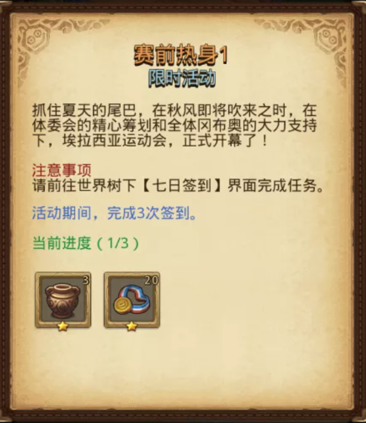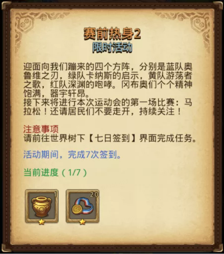 开幕式是最不可或缺的一环,它标志着运动会的开始,当然这也少不了众多冈布奥的支持,为表感谢,来参加的人都能领取到奖品,完成三次签到就能拿走奖励。