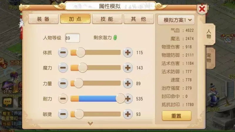第二种加点方案是3魔1体1耐,这样加点气血以及物理防御会比较高,在有难度一些的活动和pk中不仅可以站住脚,还能造成较高的伤害。这样的属性点适合打泡泡王等活动。